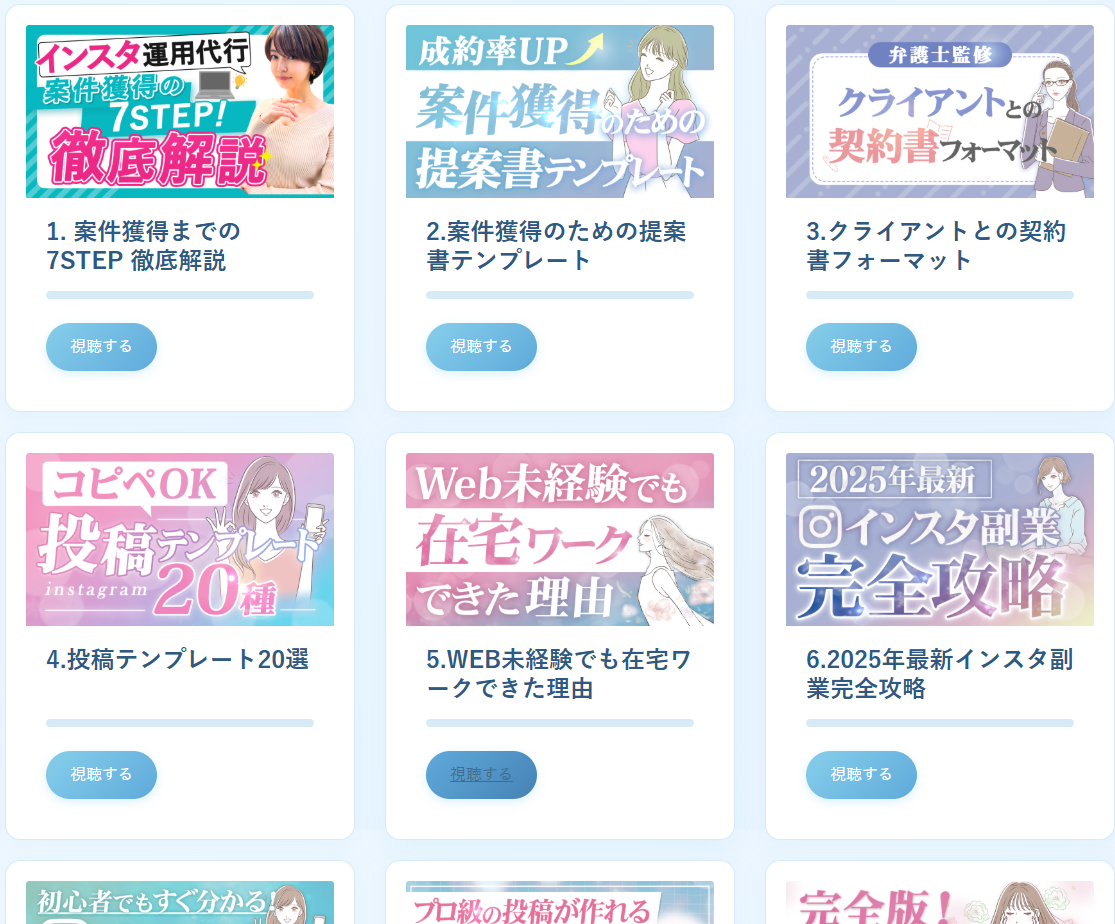 月7桁とか稼ぐ人もたくさんいるんだけど、基本的には動画を見て全部自分で実践して、その都度、運営のサポートの人に提出して添削を受けるパターン。